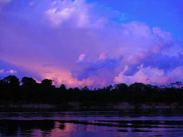Stopping to rest and cool down in the many streams that are the veins holding the lifeblood of the jungle, we could see the water glistening red in the sun, coloured by the leaves floating slowly by us as we sat. The sunsets that greeted our return to the lodge after a day of work offered yet another amazing sight, the colours of the land melting into one another as the fading light draped itself over the land. It is a fleeting moment but one that must be seen to be believed. The nights offered something different still, a counterpoint to the brightness of the days where the noises and the movements of the nocturnal animals around us created an entirely new atmosphere in the jungle to be explored.
