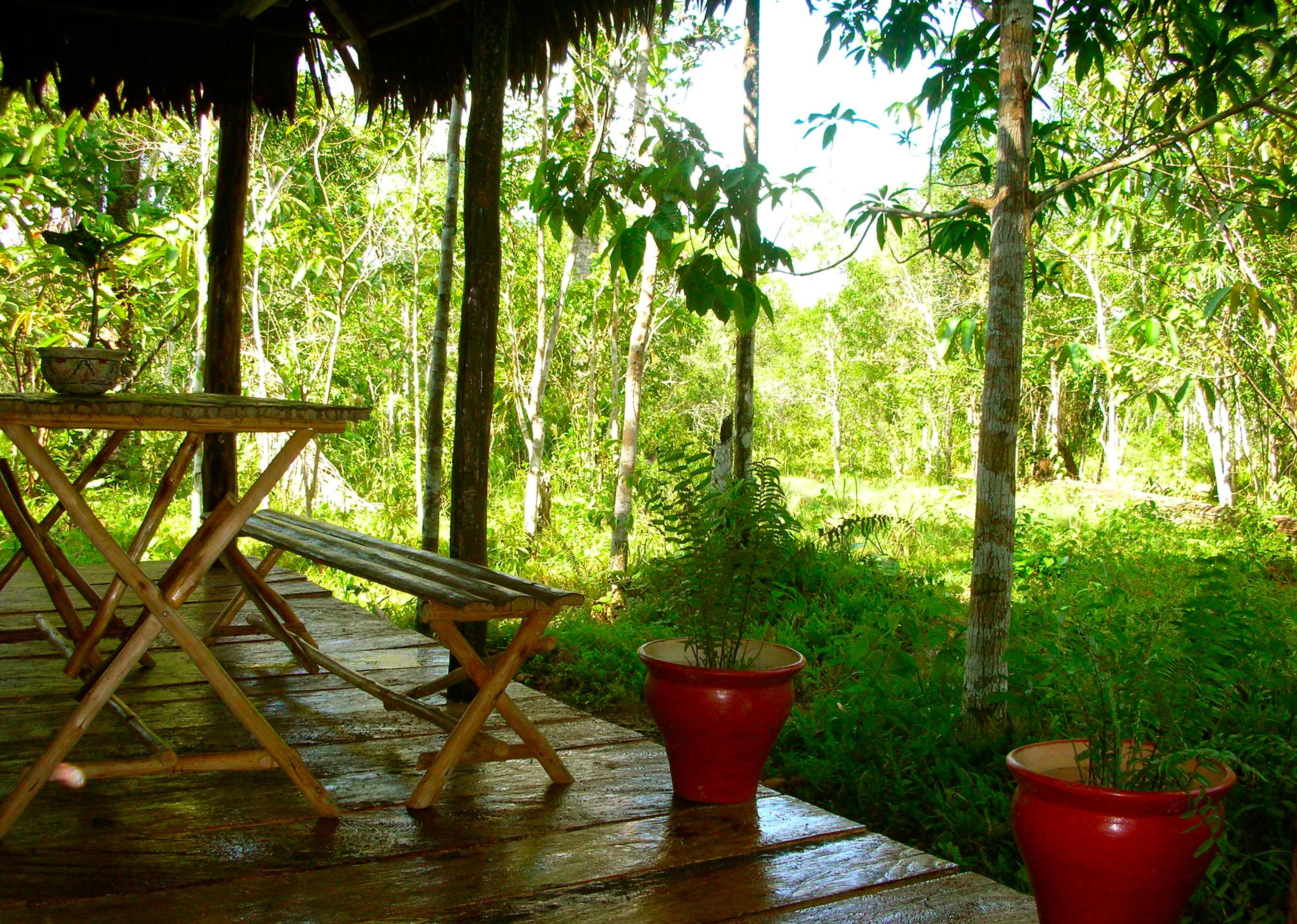 The room is provided of mosquito nets and all kind of protection. In the lodge, according to the eco rules for a Natural Reserve, light is provided not by electricity but candles and the water for bath and shower is taken by the closest water streams, and collected in special containers.